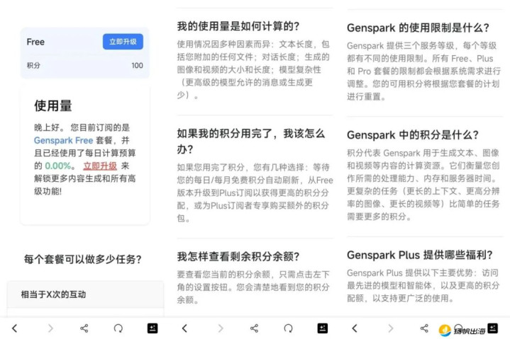 在商业化设计上,Genspark采用“订阅+积分(Credits)”并行的模式。用户通过订阅获取基础使用权限,而具体AI能力的调用,则以积分作为消耗单位进行结算。